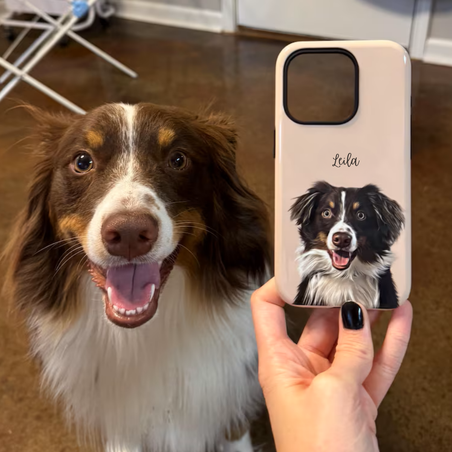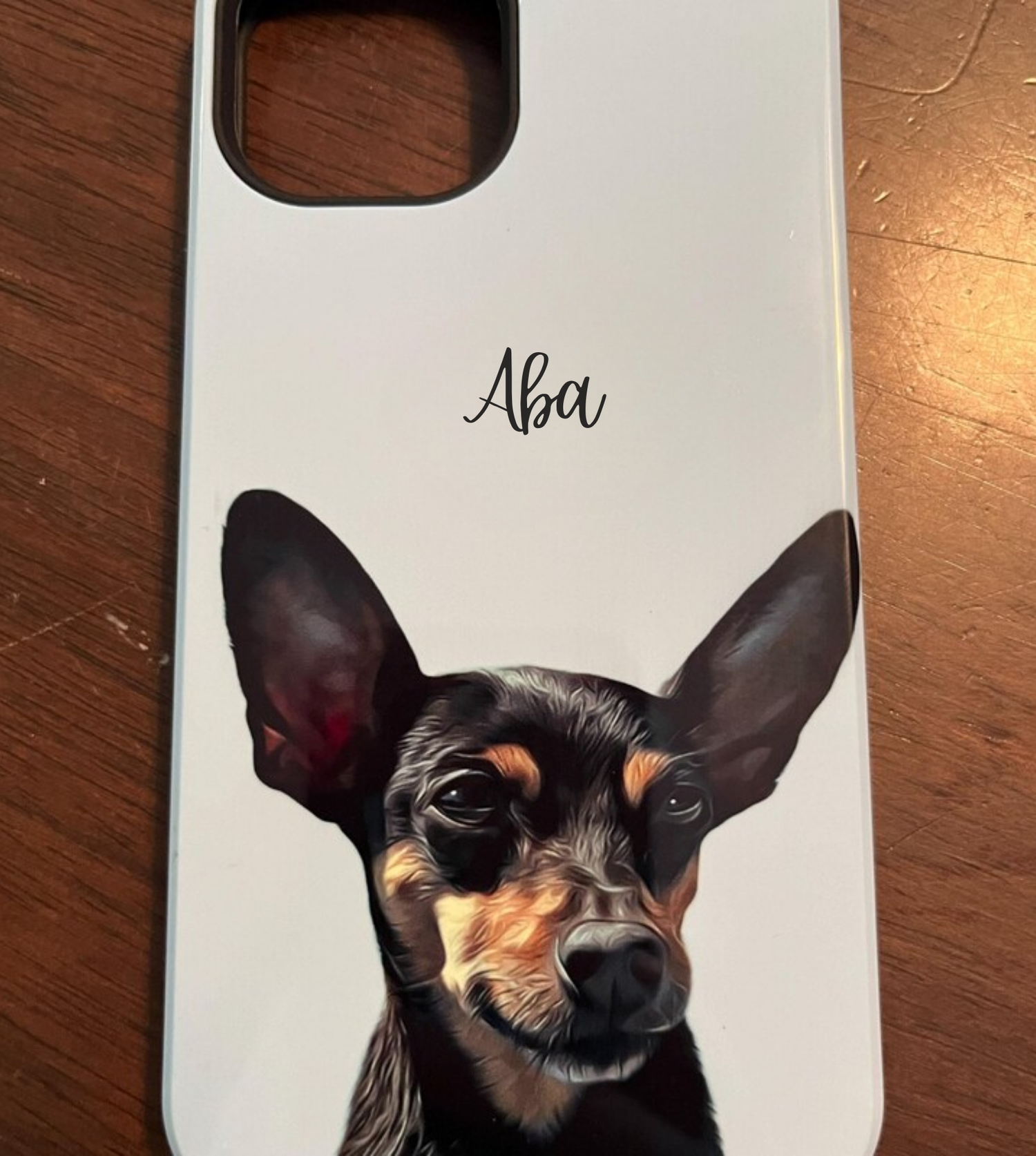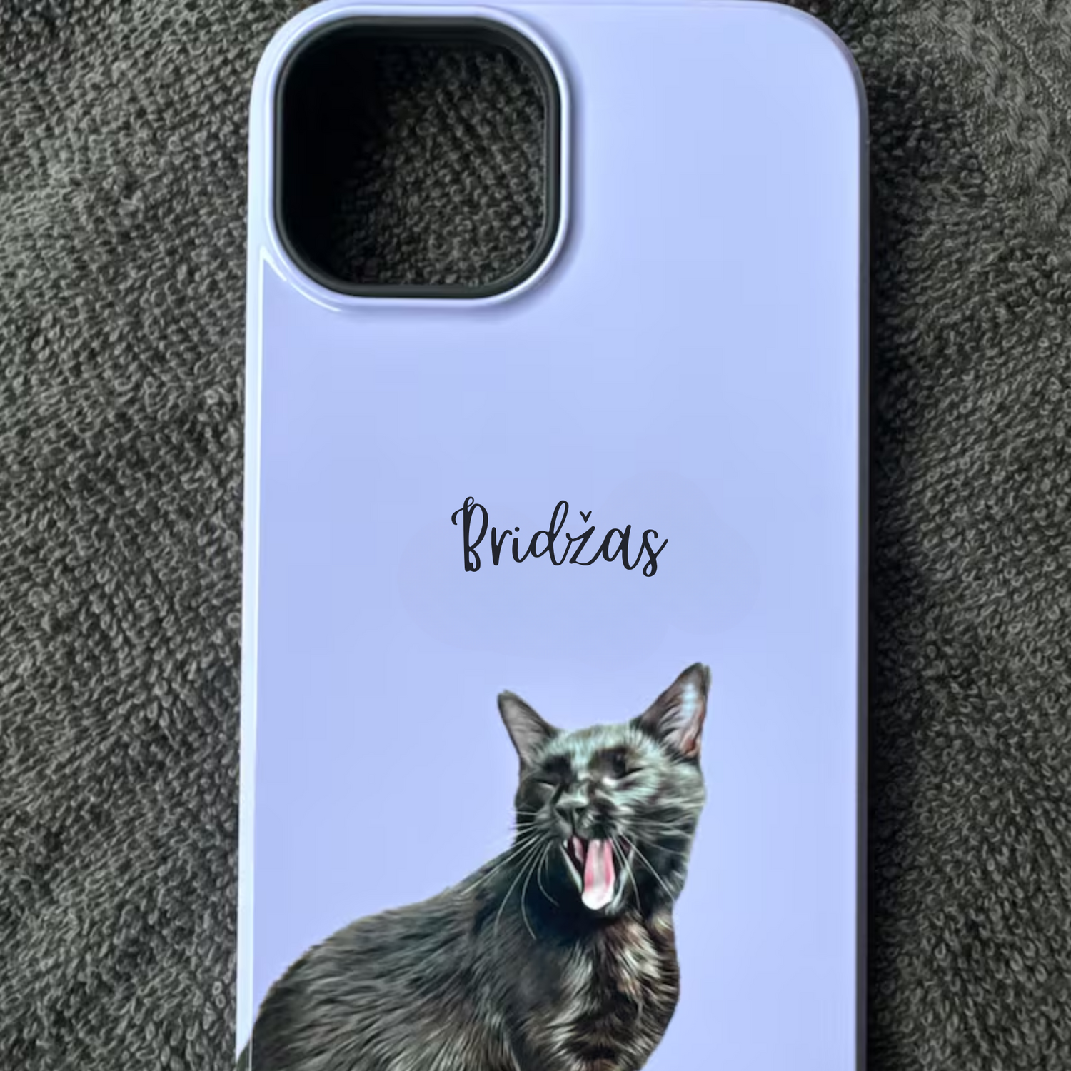 Spalvotas telefono dėklas su tapytu augintinio portretu