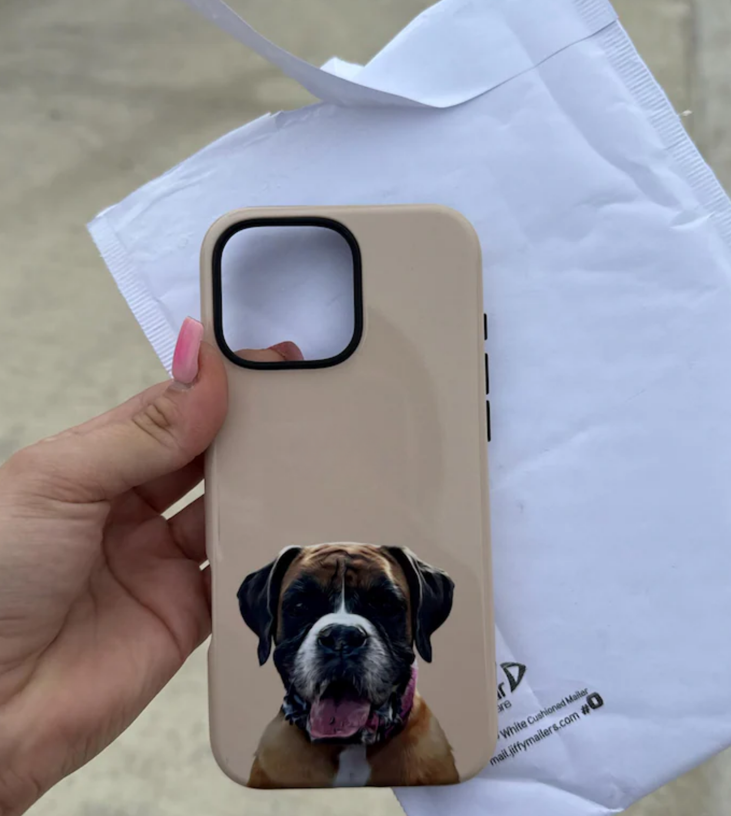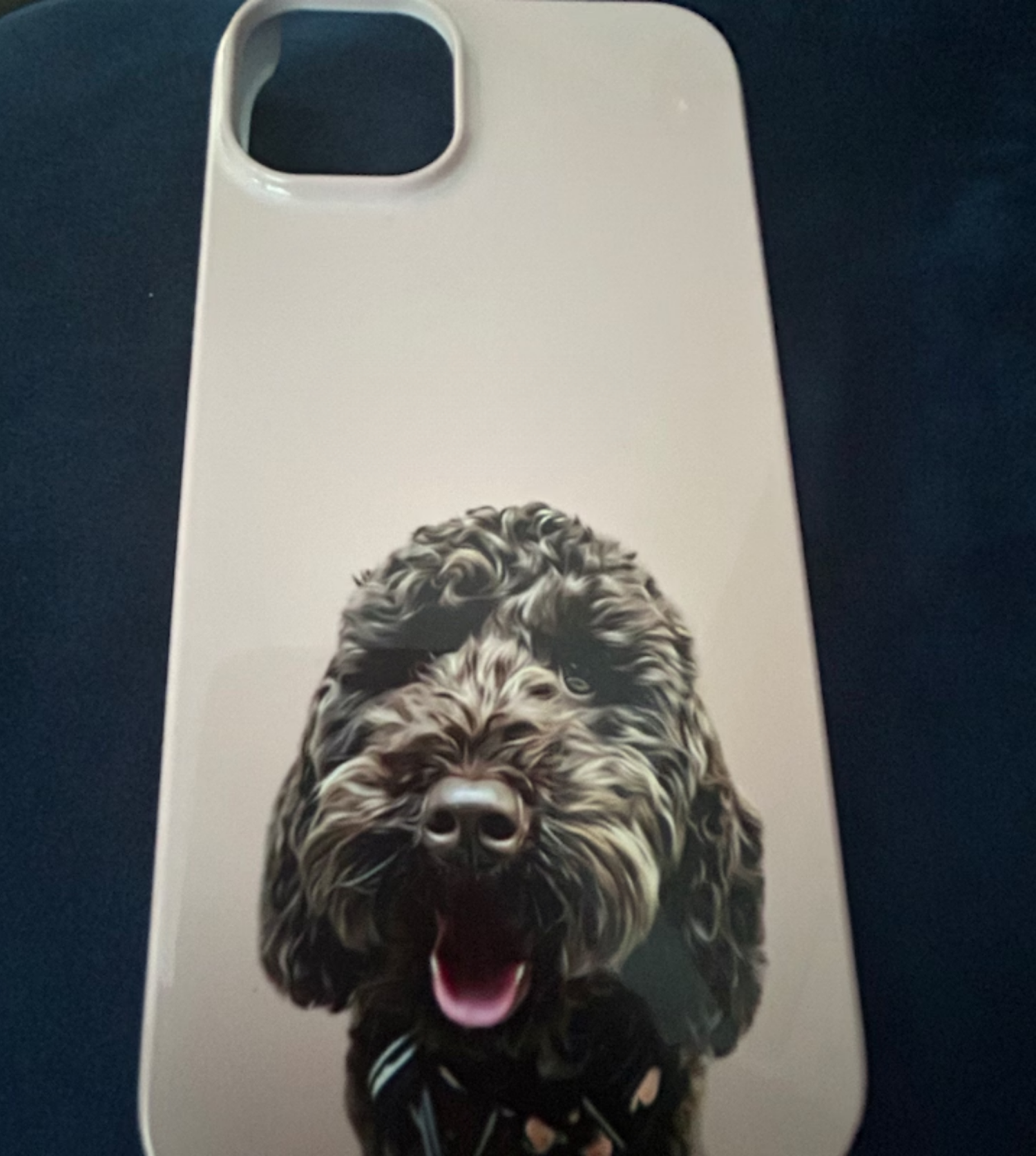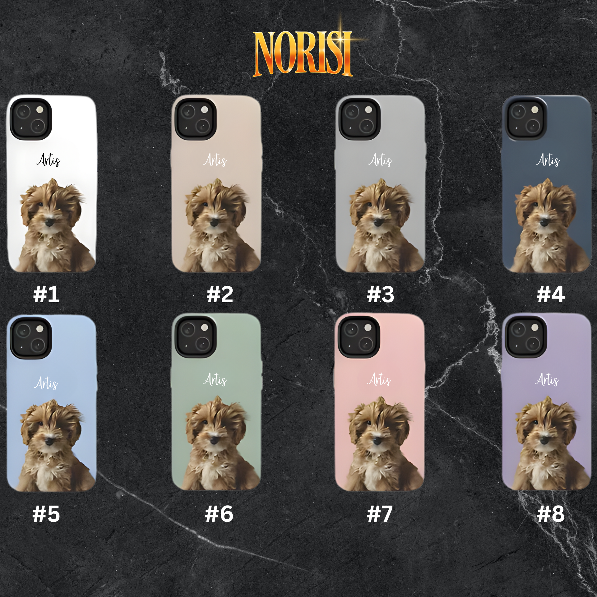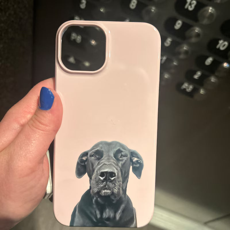 Spalvotas telefono dėklas su tapytu augintinio portretu