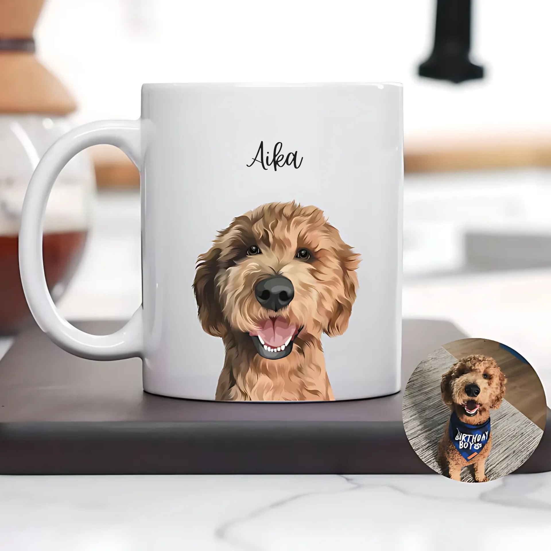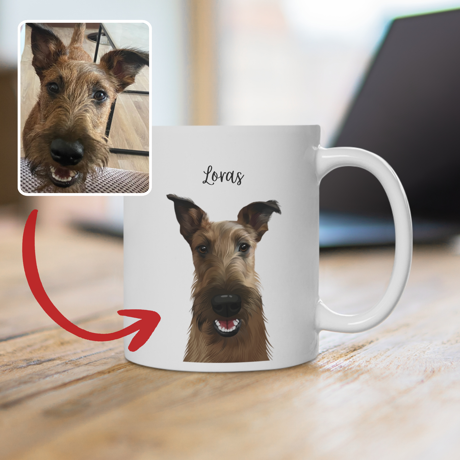 Puodelis su tapytu augintinio portretu